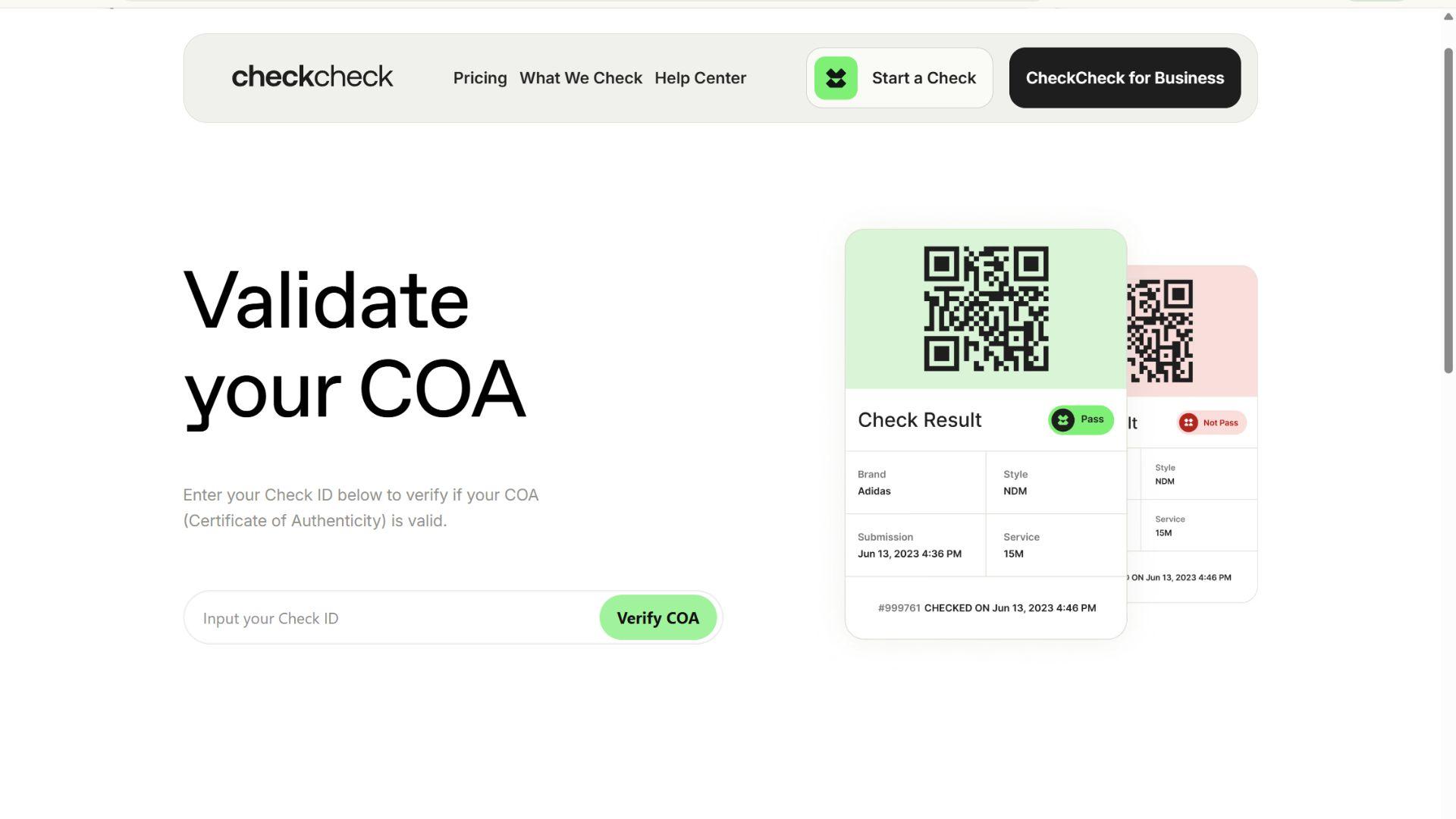 How To Verify Using CheckCheck's Validate COA Page